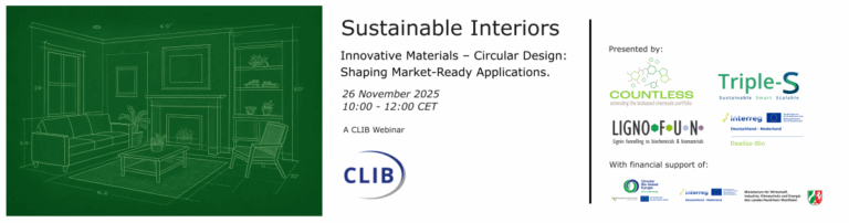 LIGNOFUN will target several markets with it’s innovative product prototypes developed using lignin-derived bioaromatics. A first showcase of future opportunities was now presented in a online webinar hosted by CLIB focussing on Sustainable Interiors.